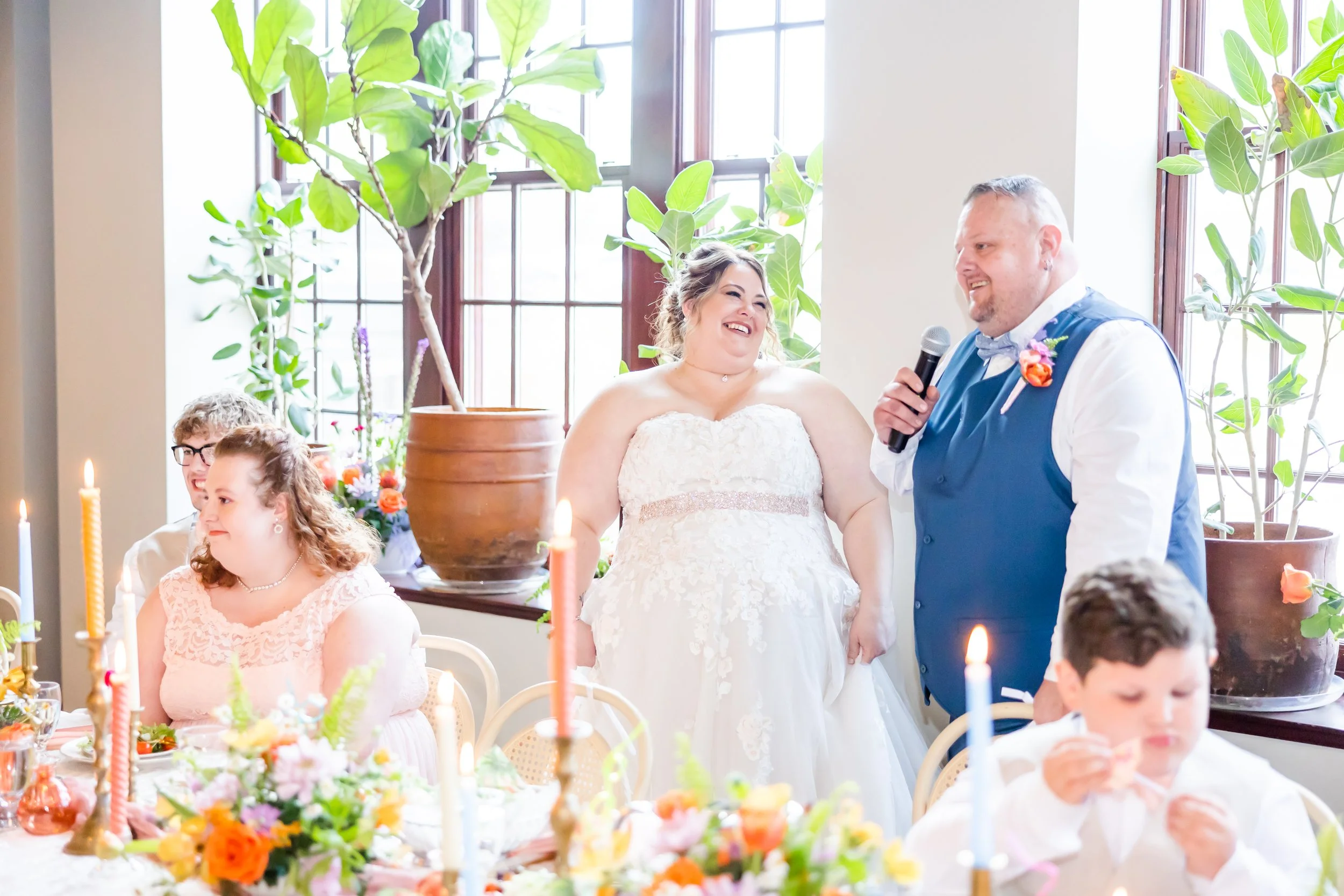 Everything about this beautiful wish was cheerful. From the gorgeous wildflowers to the colorful table scape, breathtaking cake, delicious food, creative mocktails, lively dance floor and touching toasts, Stacey and Brian soaked up the love all around them.